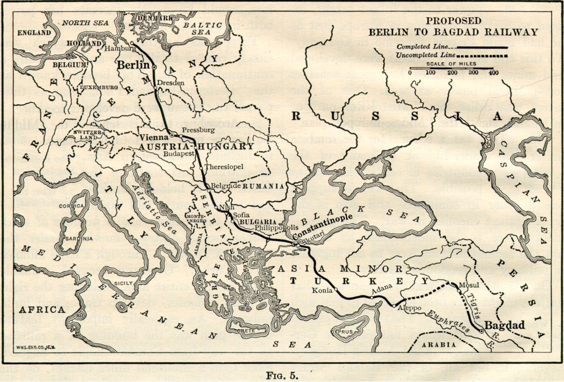 Over the first ten years of the project, a line was built across Anatolia, and in 1899 the Sultan consented to the next phase of the project. At this point the Germans needed more investment capital, and French and English financiers were approached for it. They declined to participate. The French bankers were in favor, but Paris was opposed. In Britain, the situation was reversed, with Parliament supporting the project but the Square Mile in opposition. The City and Versailles carried the day.[4] The Entente powers also put pressure on the Russians to remain uninvolved in the railway project. In 1903, a line to Basra was on the table for the British, whose considerable oil interests would have benefited from such an extension. The British, though, would have had only a 25% interest in the venture versus a 35% German one. The right-wing National Review and The Spectator quickly registered their opposition, and the British pulled out.[5]