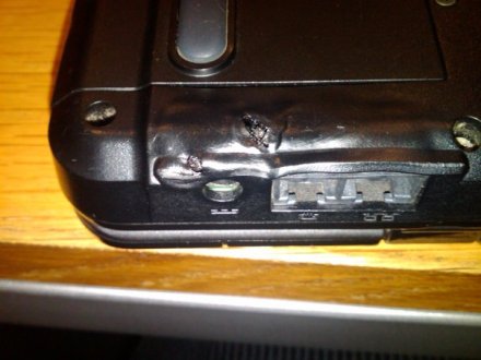 At the risk of sending this backup laptop to join my other in the great trash heap in the sky, I think I’m ready to make a comeback (but don’t call it that). The damage to the other one – melting – was a little too significant to make replacing the power assembly alone feasible. Here’s what the outside looked like: