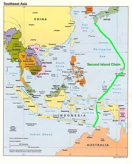 By eliminating the ‘third island chain’ – global, blue-water power projection – China’s ambitions of regional hegemony seem much more restrained and reasonable in comparison. But keep in mind that even the ‘second island chain’ in the strategy is demarcated by a line running from southern Japan to Guam through the middle of Indonesia and terminating at Australia. It’s still quite a bit of space.